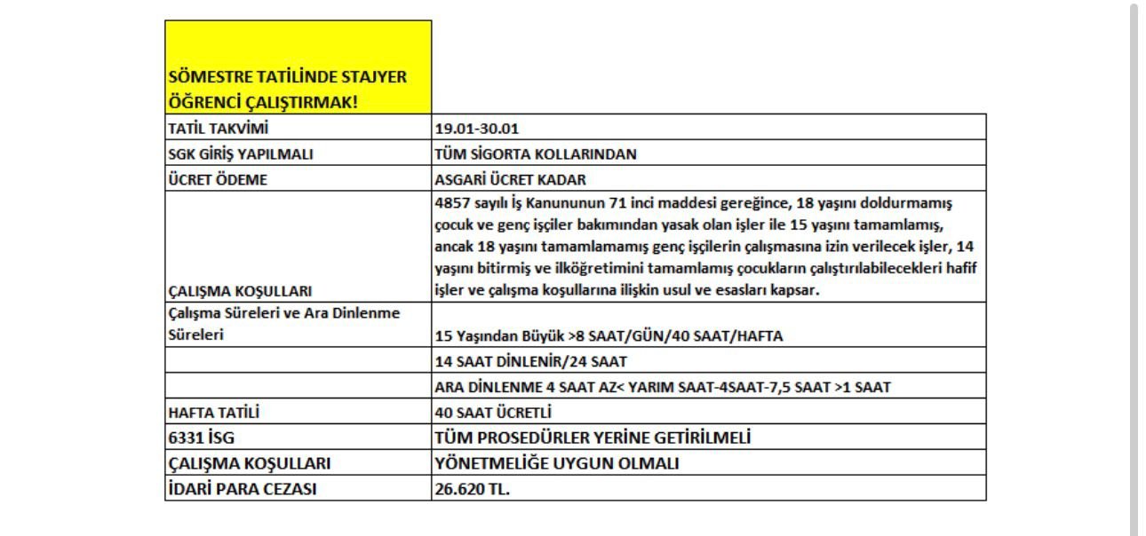 Sömestre tatilinde çalışan öğrenci çocuklarımız, gençlerimiz tatil çok şey ifade etmez. Özellikle kırsal kesimlerde tarımsal işletmelerde, tatil bölgelerinde otellerde, yiyecek içecek bölümlerinde, sanayi bölgelerinde sanayi sitelerinde, inşaatlar ve şantiyelerde. Mesleki ve teknik liselerde staj yapanlar staj yaptığı işyerinde çalışmaya devam edebilirler.